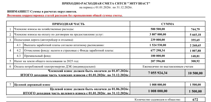 1. Членские взносы можно оплатить единовременно в сумме 10 500,00 руб. или частями до 30 июня текущего года.
