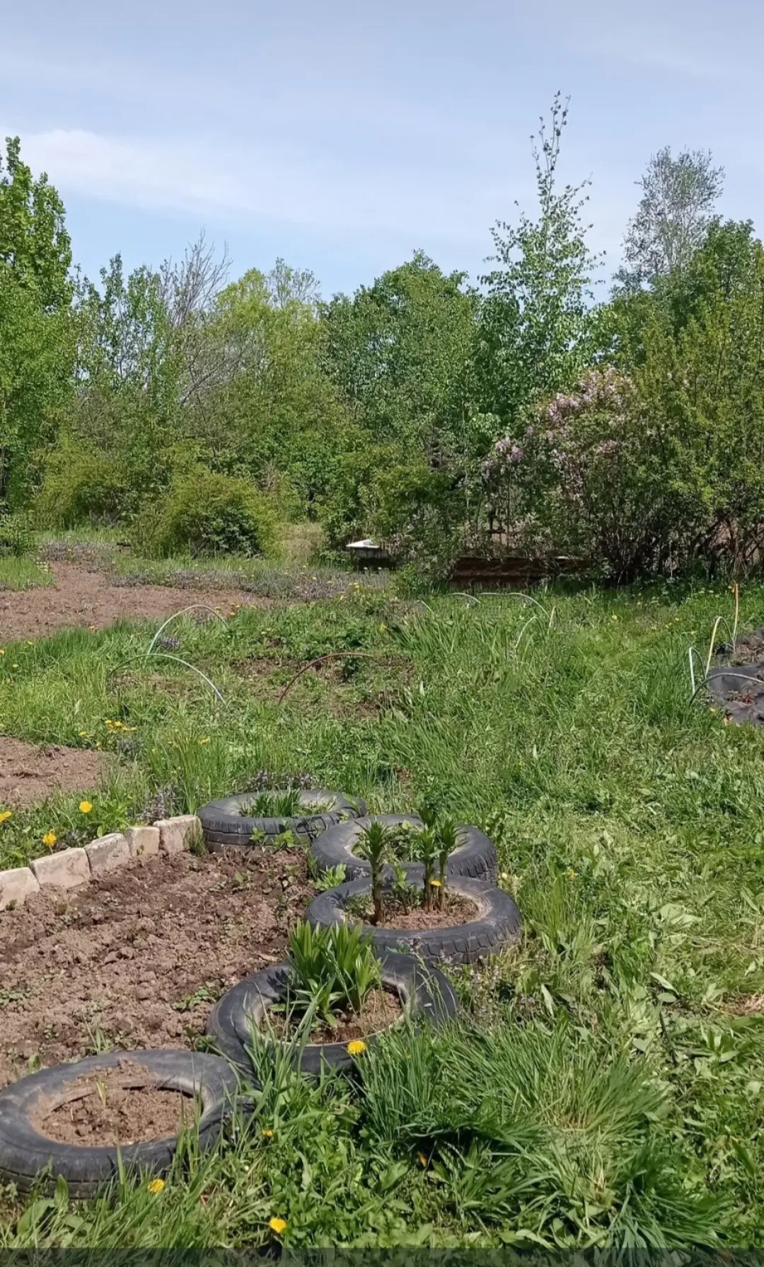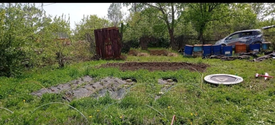 Имеется:  дом, туалет, вода, 2 контейнера, насаждения.
