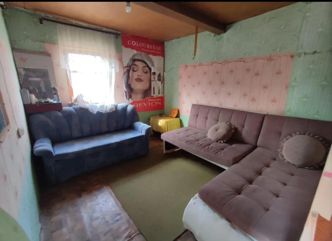 Имеется:  дом, сарай, свет, колонка, (собственность).